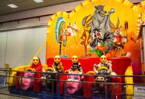 Περιστρεφόμενο παιδικό παιχνίδι με σταθερά θεματικά παιχνίδια. Τρενάκια, αλογάκια, φορτηγά και ελικόπτερα επιστρατεύονται για να κάνουν διασκεδαστικές βόλτες τους μικρούς μας φίλους! Πιλότος ο συνήθης ύποπτος και μουστακαλής… Κεφάλας!