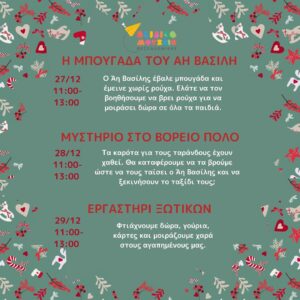 Ο Άη Βασίλης έβαλε μπουγάδα και έμεινε χωρίς ρούχα. Ελάτε στο μουσείο να τον βοηθήσουμε να βρει ρούχα για να μοιράσει δώρα σε όλα τα παιδιά.